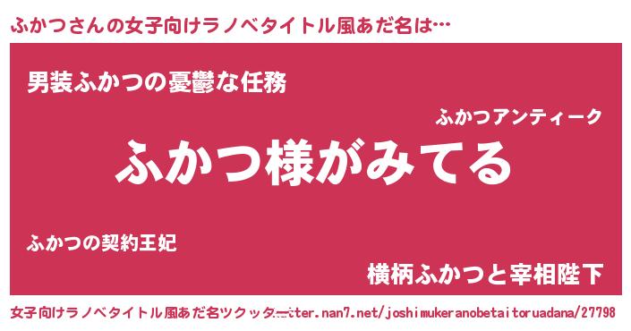 | 意味不明あだ名 | 『とにかく怪しいふかつ』『自称ふかつ』 |