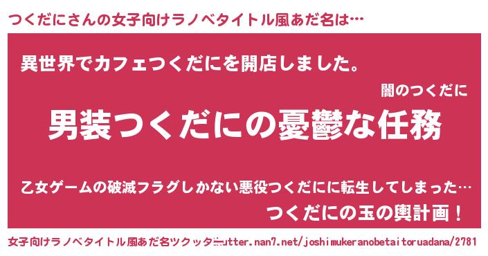 | 男性向けラノベタイトル風あだ名 | 『冴えないつくだにの育てかた』 |