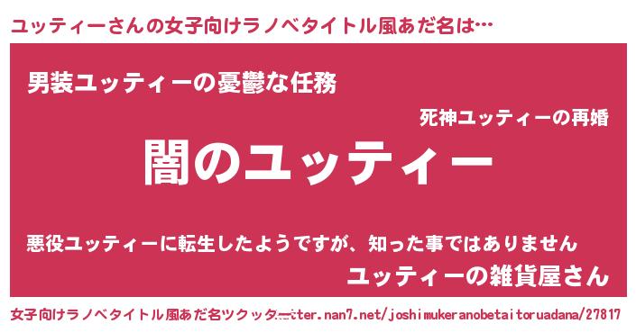 | 男性向けラノベタイトル風あだ名 | 『Re:ユッティーから始める異世界生活』 |