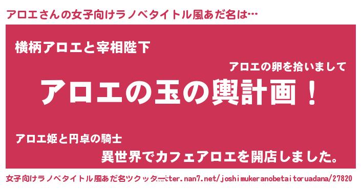 | 男性向けラノベタイトル風あだ名 | 『転生したらアロエだった件』 |