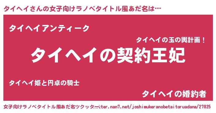 | 男性向けラノベタイトル風あだ名 | 『タイヘイという概念が存在しない退屈な世界 』 |
