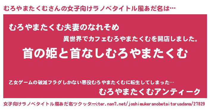 | 男性向けラノベタイトル風あだ名 | 『はたらくむろやまたくむさま!』 |