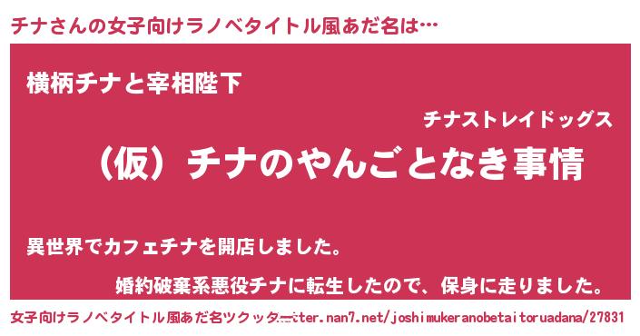 | 男性向けラノベタイトル風あだ名 | 『チナの憂鬱』『チナスレイヤー』 |