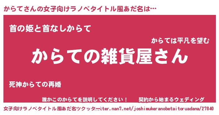 | 男性向けラノベタイトル風あだ名 | 『やはりからての青春ラブコメはまちがっている 』 |