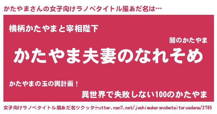 | 男性向けラノベタイトル風あだ名 | 『おまえをオタクにしてやるから、俺をかたやまにしてくれ! 』 |