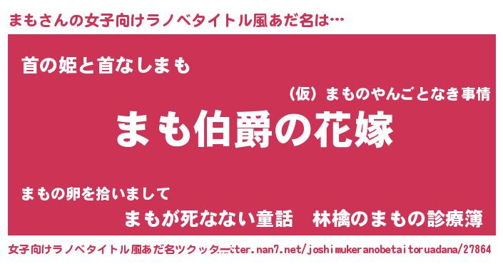 | 男性向けラノベタイトル風あだ名 | 『やはりまもの青春ラブコメはまちがっている 』 |