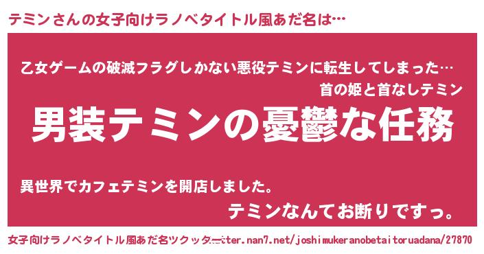 | 男性向けラノベタイトル風あだ名 | 『冴えないテミンの育てかた』 |