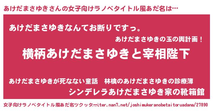 | 男性向けラノベタイトル風あだ名 | 『あけだまさゆきに滅ぼされるだけの簡単なお仕事です』 |