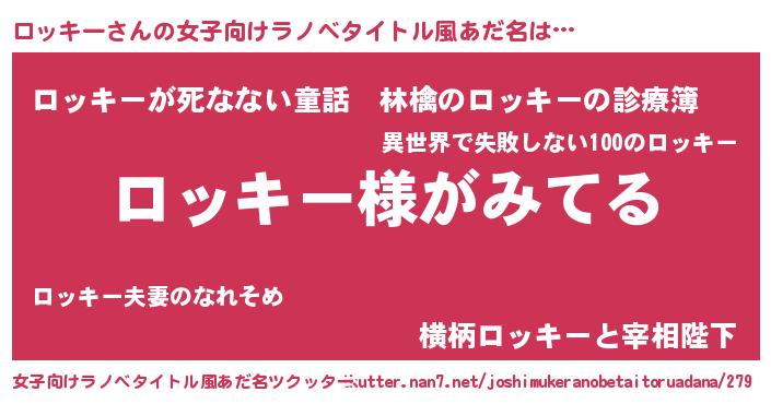 | 男性向けラノベタイトル風あだ名 | 『ロッキーの嫁は女の子じゃないと思った?』 |