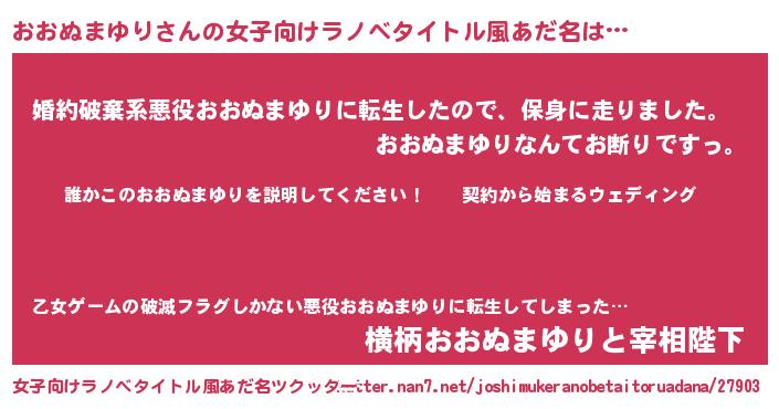 | ヘコむあだ名 | 『おおにゅー』『おおぬまゆり(小並感)』 |