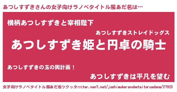 | 男性向けラノベタイトル風あだ名 | 『アツシスズキアートオンライン』 |