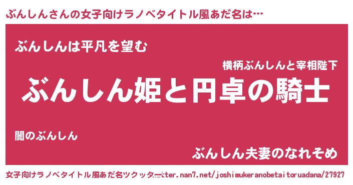 | 男性向けラノベタイトル風あだ名 | 『ぶんしんの憂鬱』 |