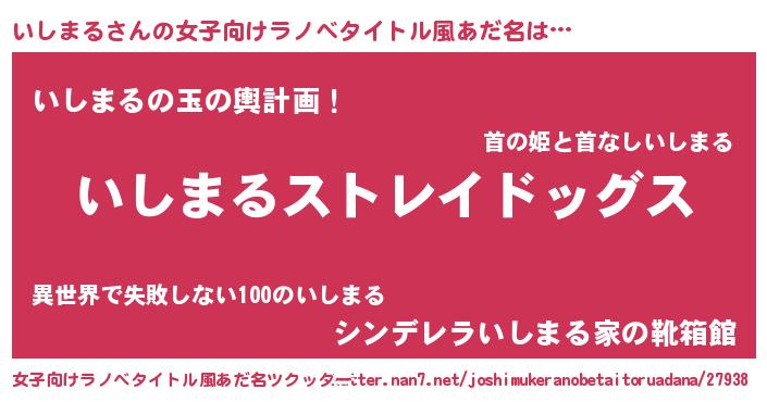 | 男性向けラノベタイトル風あだ名 | 『Re:いしまるから始める異世界生活』 |