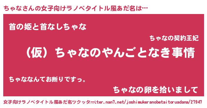 | 男性向けラノベタイトル風あだ名 | 『ちゃなの憂鬱』『はたらくちゃなさま!』 |