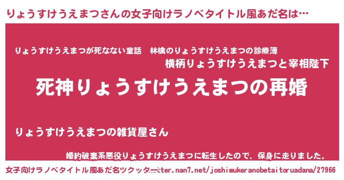 | 男性向けラノベタイトル風あだ名 | 『ノーゲーム・ノーリョウスケウエマツ』 |