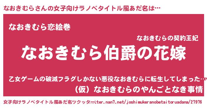 | ファンタジー風あだ名 | 『エターナルナオキムラー』『ナオフェル』 |