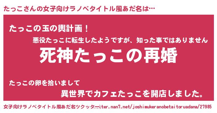 | 男性向けラノベタイトル風あだ名 | 『ノーゲーム・ノータッコ』 |