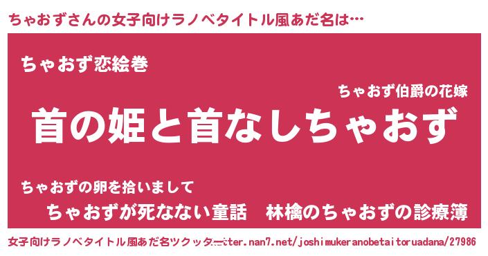 | 男性向けラノベタイトル風あだ名 | 『はたらくちゃおずさま!』 |