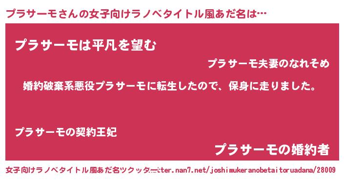| 男性向けラノベタイトル風あだ名 | 『転生したらプラサーモだった件』 |