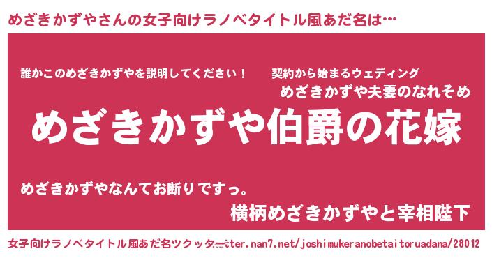 | 男性向けラノベタイトル風あだ名 | 『やはりめざきかずやの青春ラブコメはまちがっている 』 |