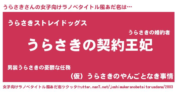 | ヘコむあだ名 | 『うらさき(笑)』『うらにゅー』 |