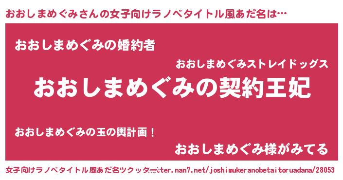 | 男性向けラノベタイトル風あだ名 | 『誰もが恐れるあのおおしまめぐみが、ぼくの専属メイドになるようです。』 |