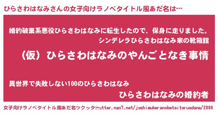 | 男性向けラノベタイトル風あだ名 | 『ひらさわはなみの憂鬱』 |