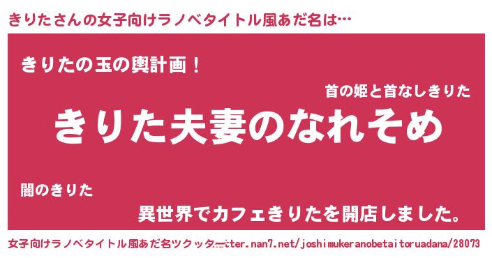 | 男性向けラノベタイトル風あだ名 | 『おまえをオタクにしてやるから、俺をきりたにしてくれ! 』 |
