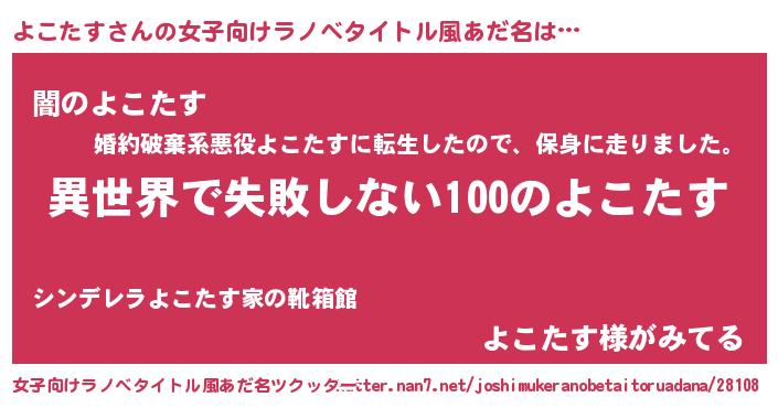 | 意味不明あだ名 | 『永久保存よこたす』『自称よこたす』 |