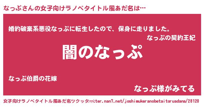 | 意味不明あだ名 | 『自称なっぷ』『しいたけ科なっぷ属』 |
