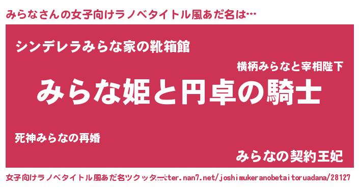 | 男性向けラノベタイトル風あだ名 | 『ミラナアートオンライン』 |
