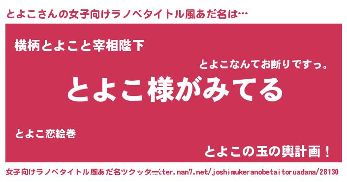 | 意味不明あだ名 | 『とにかく怪しいとよこ』『自称とよこ』 |
