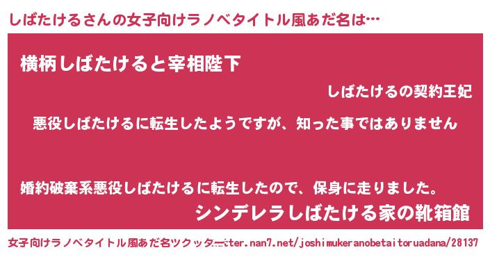 | 男性向けラノベタイトル風あだ名 | 『この素晴らしい世界にしばたけるを!』 |