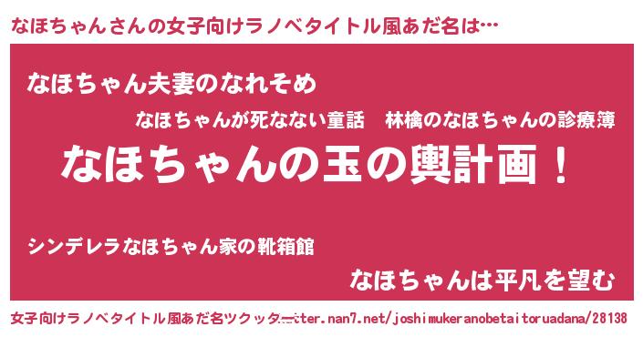 | 男性向けラノベタイトル風あだ名 | 『転生したらなほちゃんだった件』 |