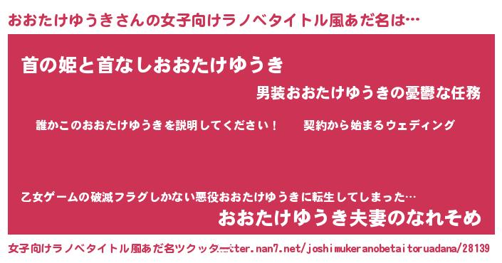 | ヘコむあだ名 | 『おおにー』『おおたけゆうき(苦笑)』 |