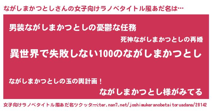 | 男性向けラノベタイトル風あだ名 | 『ながしまかつとしという概念が存在しない退屈な世界 』 |