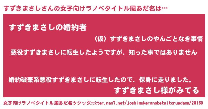 | 胡散臭い通販商品みたいなあだ名 | 『あなたにだけ特別に提供する100年もののヴィンテージワイン…その名も「すずきまさし」』 |
