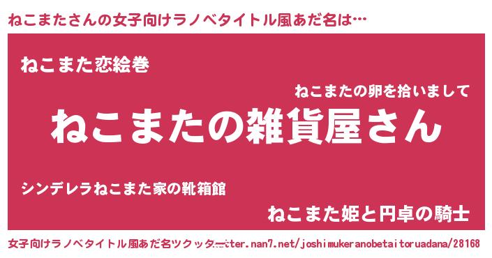 | 男性向けラノベタイトル風あだ名 | 『やはりねこまたの青春ラブコメはまちがっている 』 |