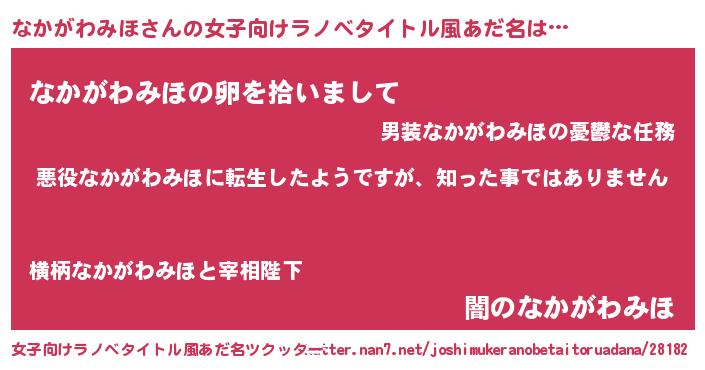 | 男性向けラノベタイトル風あだ名 | 『この素晴らしい世界になかがわみほを!』 |