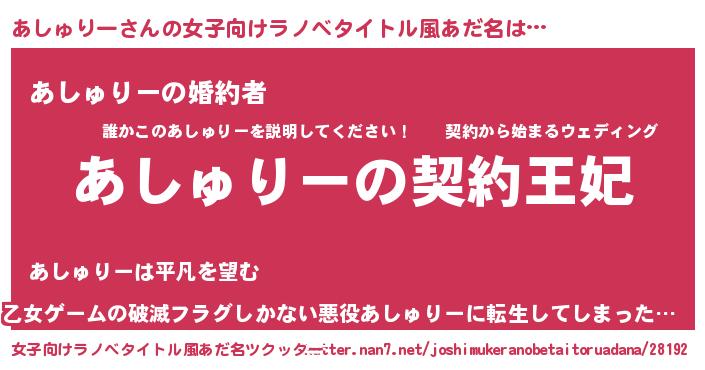 | 胡散臭い通販商品みたいなあだ名 | 『来世でも幸せになれる健康食品…その名も「あしゅりー」』 |