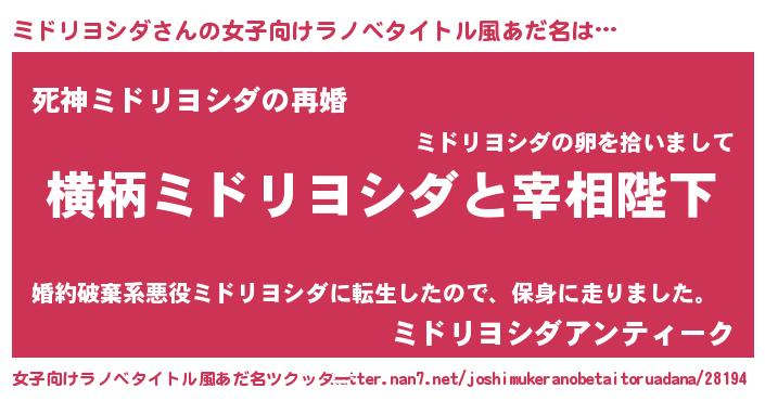 | ヒーロー風カッコイイあだ名 | 『慈愛の使者ミドリヨシダ』 |