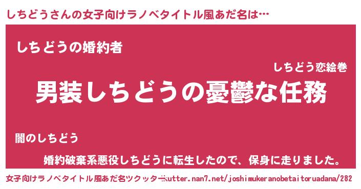 | 男性向けラノベタイトル風あだ名 | 『冴えないしちどうの育てかた』 |