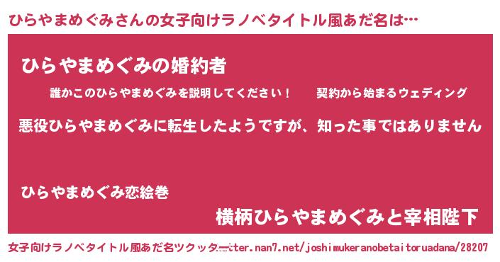 | 胡散臭い通販商品みたいなあだ名 | 『あなたにだけ特別に提供する100年もののヴィンテージワイン…その名も「ひらやまめぐみ」』 |
