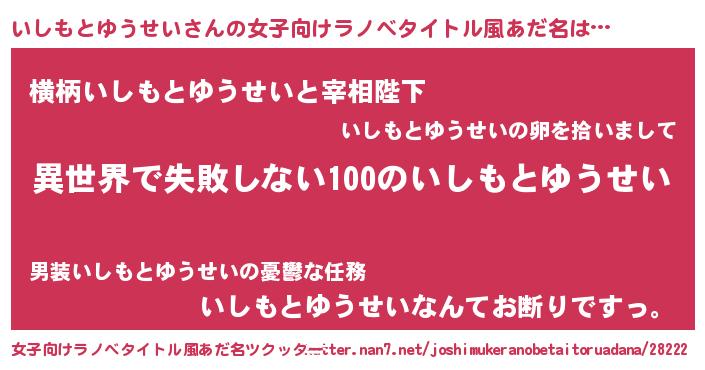| ヘコむあだ名 | 『いしもとゆうせい(笑)』『いしお』 |