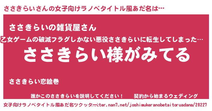 | 意味不明あだ名 | 『とにかく怪しいささきらい』 |