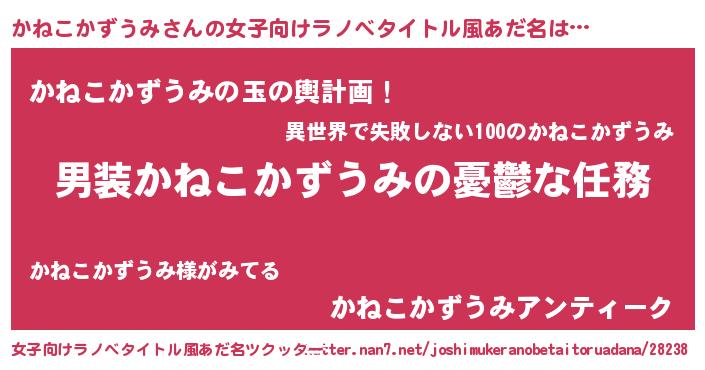 | 男性向けラノベタイトル風あだ名 | 『うちのかねこかずうみが世界を掌握している!』 |