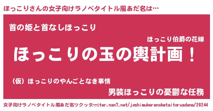 | ヒーロー風カッコイイあだ名 | 『ウルトラほっこりマン』『幻影騎士ホッ』 |