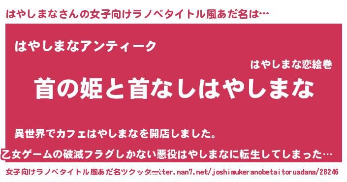 | 男性向けラノベタイトル風あだ名 | 『はたらくはやしまなさま!』 |