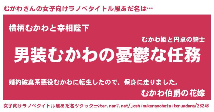 | 男性向けラノベタイトル風あだ名 | 『うちのむかわが世界を掌握している!』 |