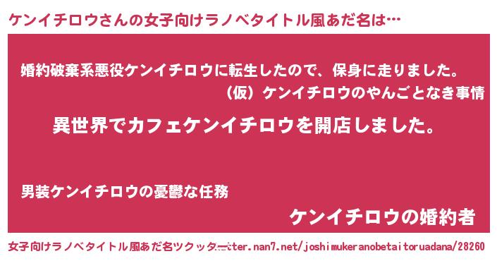 | ヒーロー風カッコイイあだ名 | 『ネオケンイチロウ』『黄金騎士ケン』 |